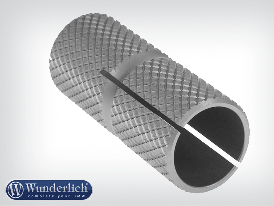 Many people find that the gear shift lever tip is too short and too thin. This enlargement is simply pushed over the original lever tip and is firmly held in place (add a bit of silicon sealant for extra security). The length, the girth and the improved grip make changing gears a pleasure. The lever is also given a sporty look. Turned, machined and anodised from solid aluminium.