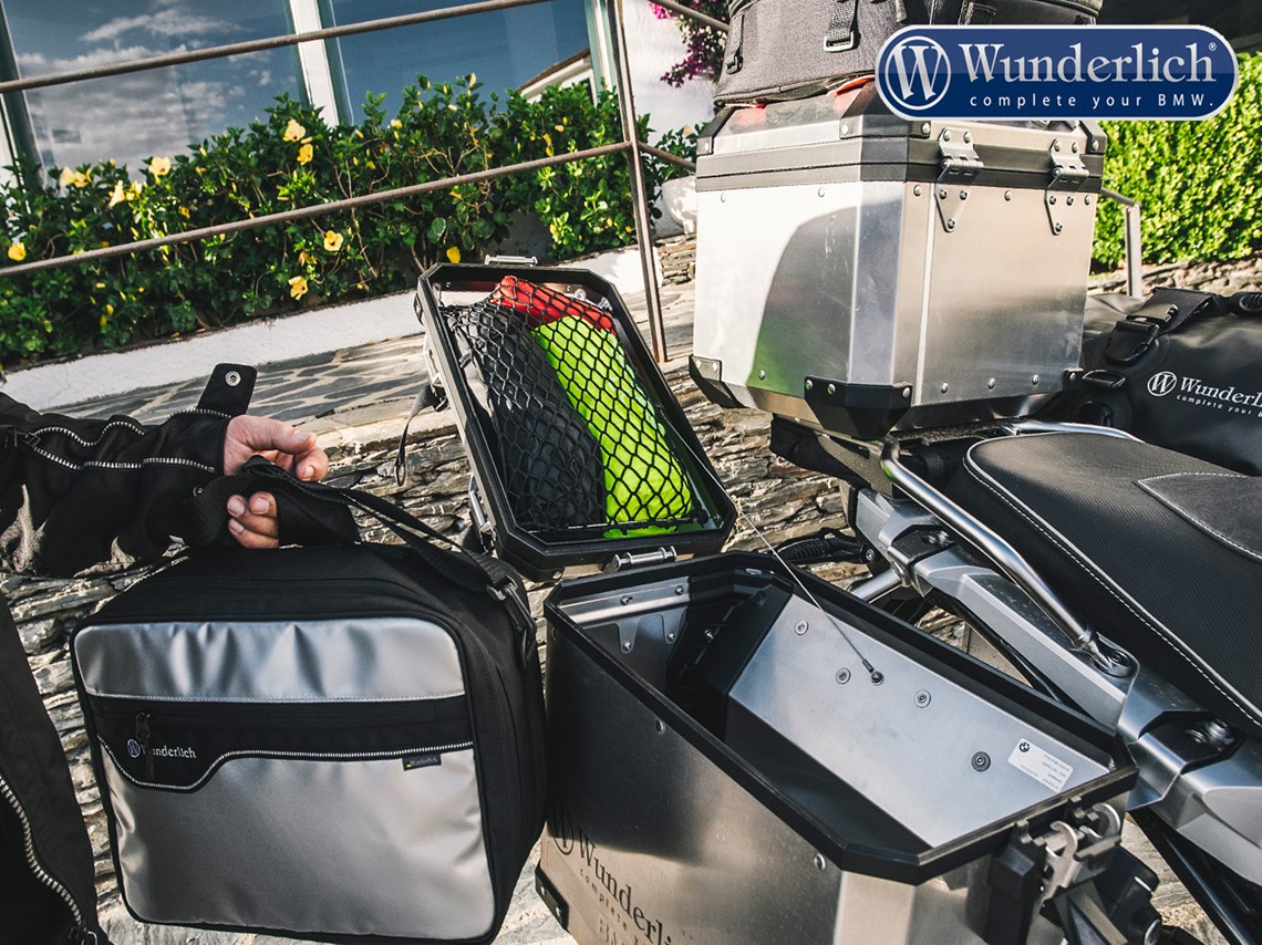 For everything you need quickly to hand: You can store rainwear, a first aid kit and tools in the cover of the original aluminium pannier and have it ready to hand right after opening.