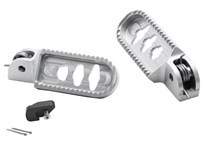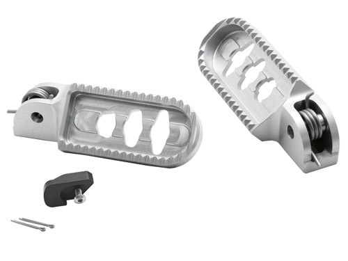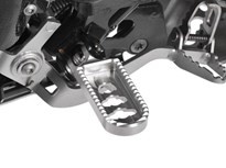 These footrests are a part of our “Ergo” program of handle bar risers, seats and adjustable control levers, with which we are providing the components for each rider to “fine-tune” the riding position and posture to his or her own personal needs. For the 1200 models we wanted a better knee angle, but without having to move the feet outwards. To achieve this we had to make a completely new footrest. The footrest is made of high quality aluminium and will withstand the highest loads. For better comfort the original rubber footrest insert can be used.