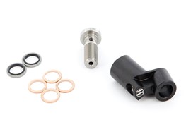 Our high-grade adapter for the brake and clutch line offers an extension of around 35 mm, which has proven effective in practice. We include the necessary hollow screw and all required seals as standard with the practical adapter. It is attached directly to the respective brake or the clutch master cylinder. We have gently angled the edges of the adapter to simplify connection of the supply lines, so that they can be routed and connected without any tension.