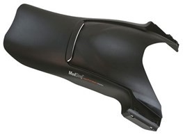 BMW have provided a minimal rear mudguard for the liquid cooled models but it is insufficiently long and wide to capture mud and water spray thrown forward onto the suspension and to the sides onto riders legs. This new MudSling® increases the surface area to each side by up to 3, and downwards by a full 7 to cover and protect the outside of the Paralever arm.