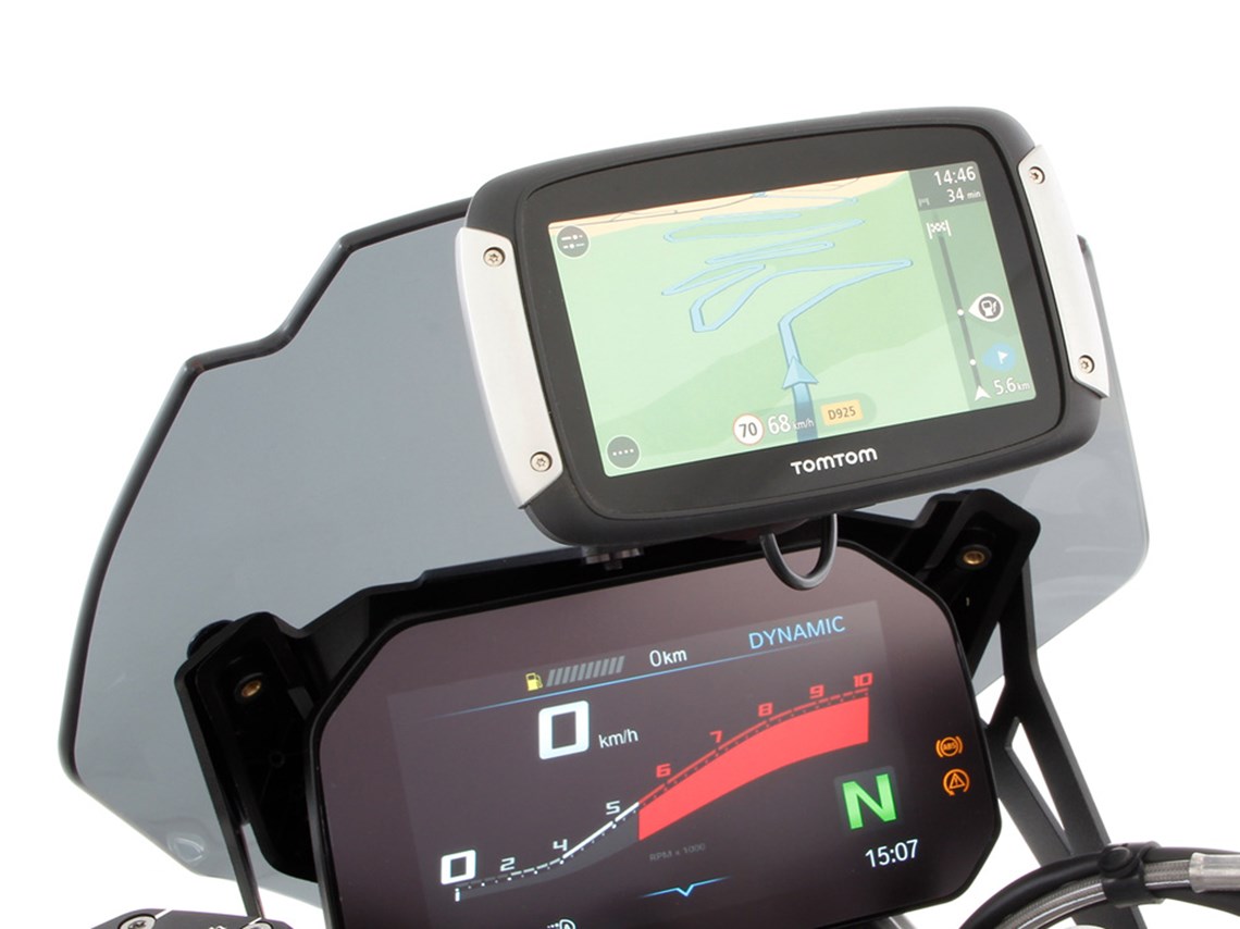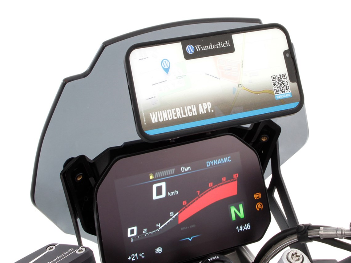 • The universal device carrier enables the navigation system or smartphone to be positioned in the natural line of sight in an ergonomically advantageous manner