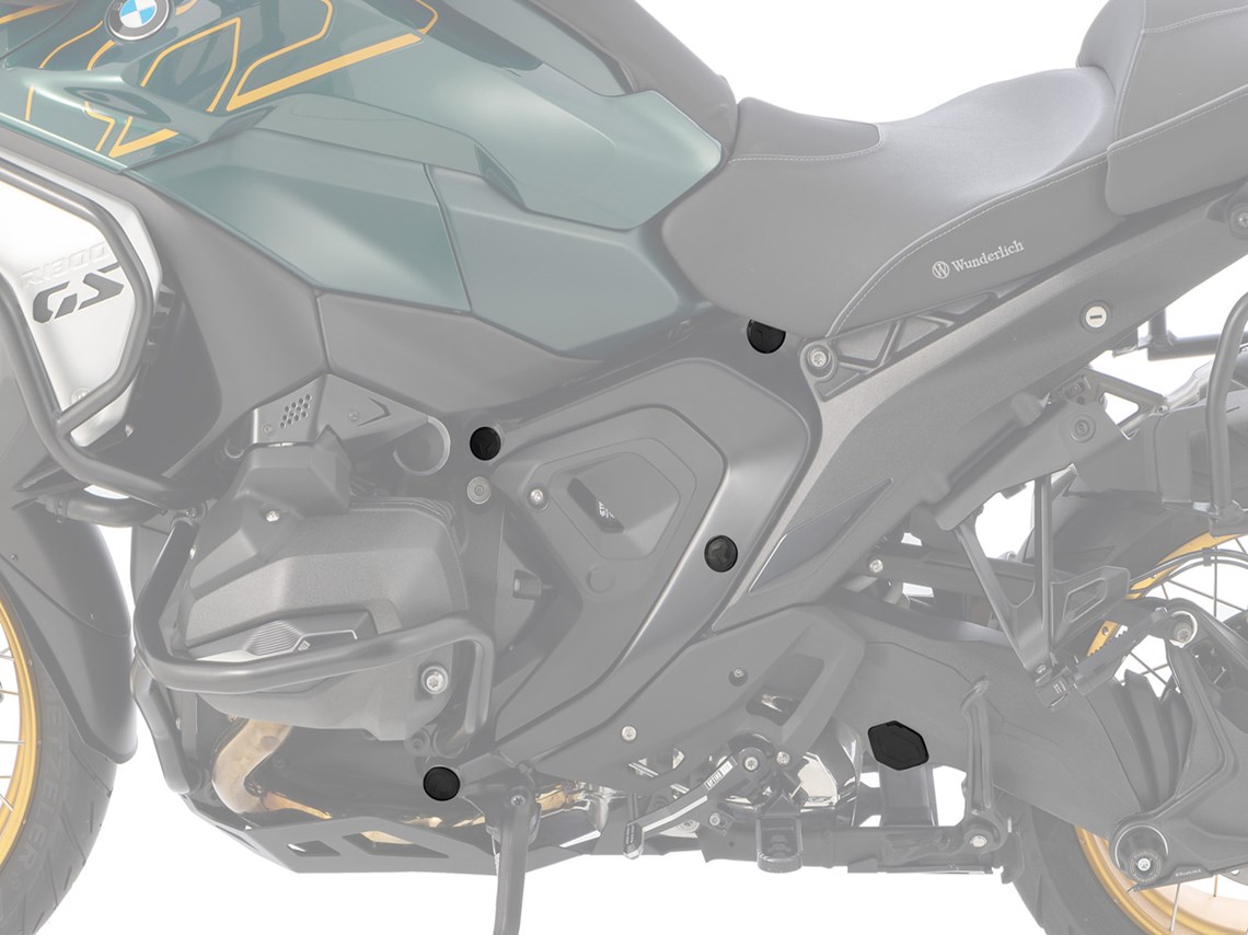 •Set consisting of a total of eight model-specific frame plugs, three for the right and five for the left side