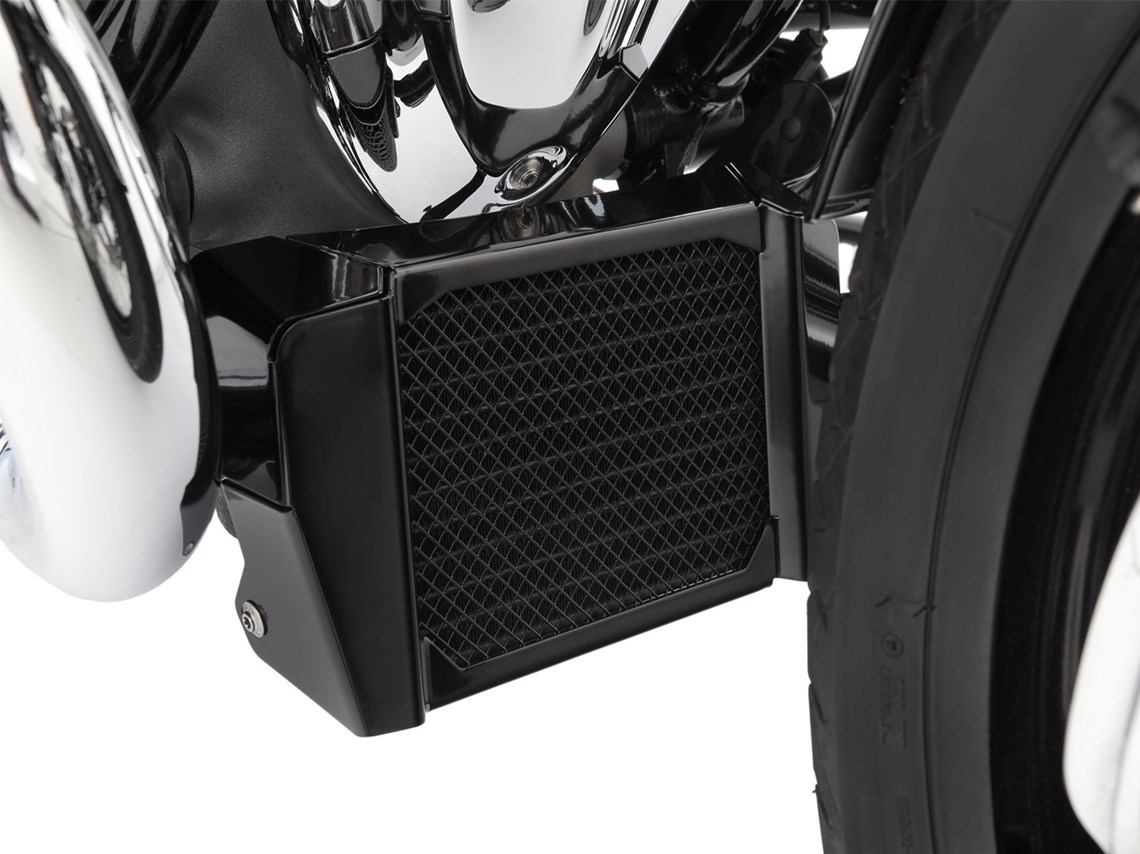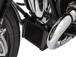 The standard plastic cover of the oil cooler of the R18 appears to many like a foreign body in an otherwise extremely coherent concept. We have developed an oil cooler grill made entirely of high quality black powder-coated stainless steel, which not only enhances the appearance of the Big Boxer, but also takes on the function of protecting the oil cooler. Our oil cooler grill is convincing in two ways: With our proven radiator protection concept and a coherent, integrated design that does justice to the Big Boxer.