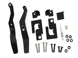 Two brackets that are attached to the passenger footrest struts on the motorcycle