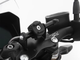 At the same time, no matter whether you want to use the universal device holder for your navigation device or smartphone, it ergonomically positions the device for use. The carrier simply attaches to the handlebar clamp. The device carrier is made of black powder-coated stainless steel.