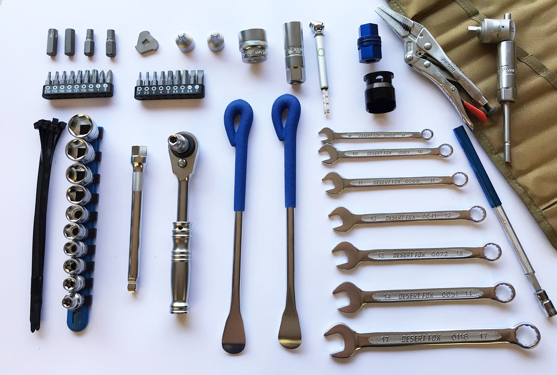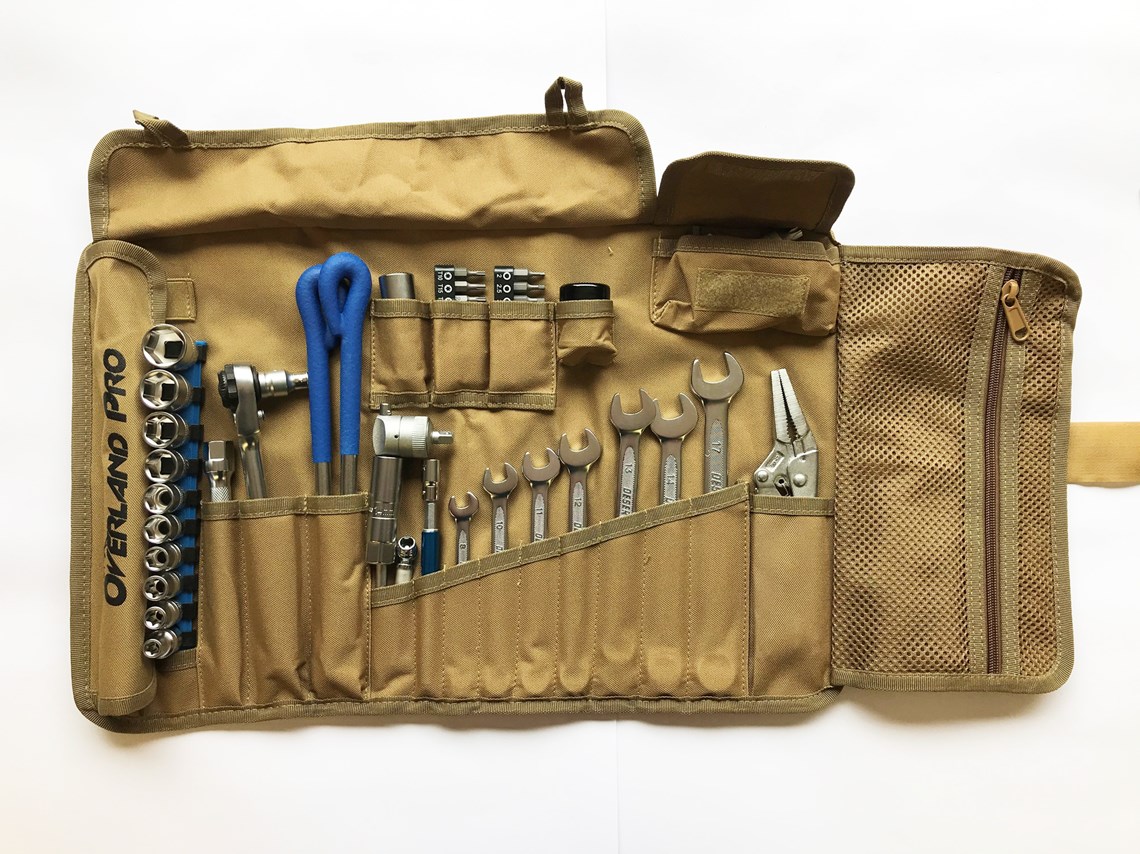 The Overland Pro motorcycle tool kit is Desert Fox’s premium offering and is designed to cover just about any mechanical eventuality you may encounter, on or off-road.