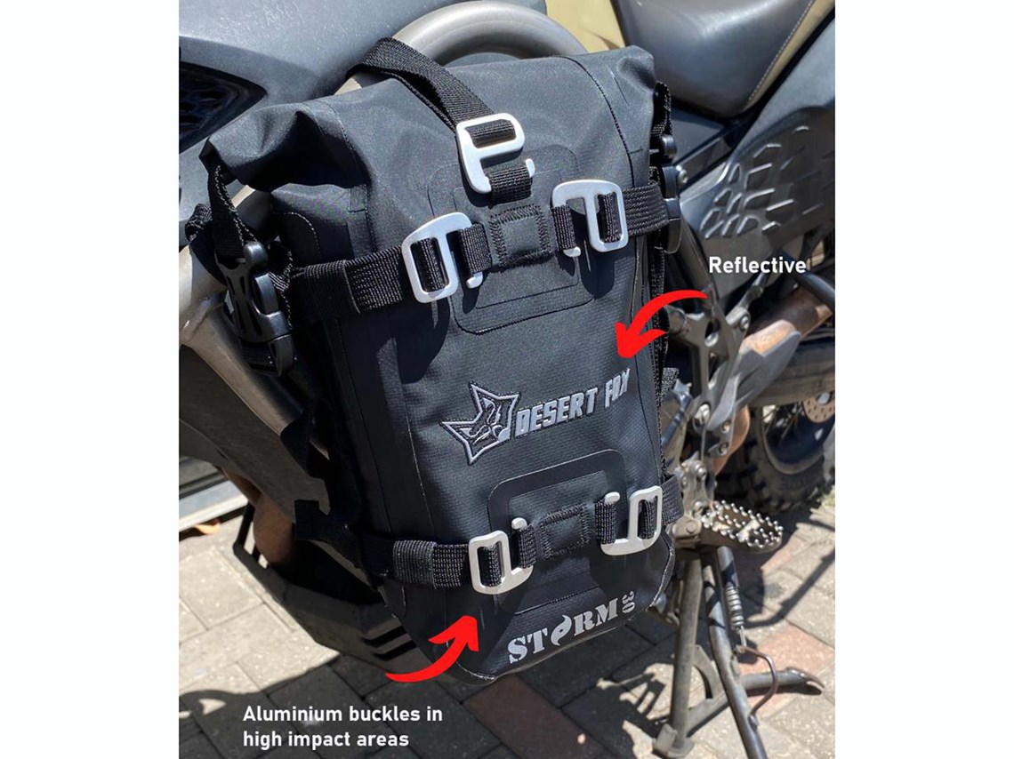 The Desert Fox Strom 30 is a multipurpose waterproof crashbar/mudguard/seat bag suitable for adventure and enduro bikes.