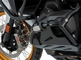The side of the protector facing the motorcycle is only five millimetres thick, so it can be easily mounted on all crash bars with a tube diameter of 25 mm, even in tight installation situations.