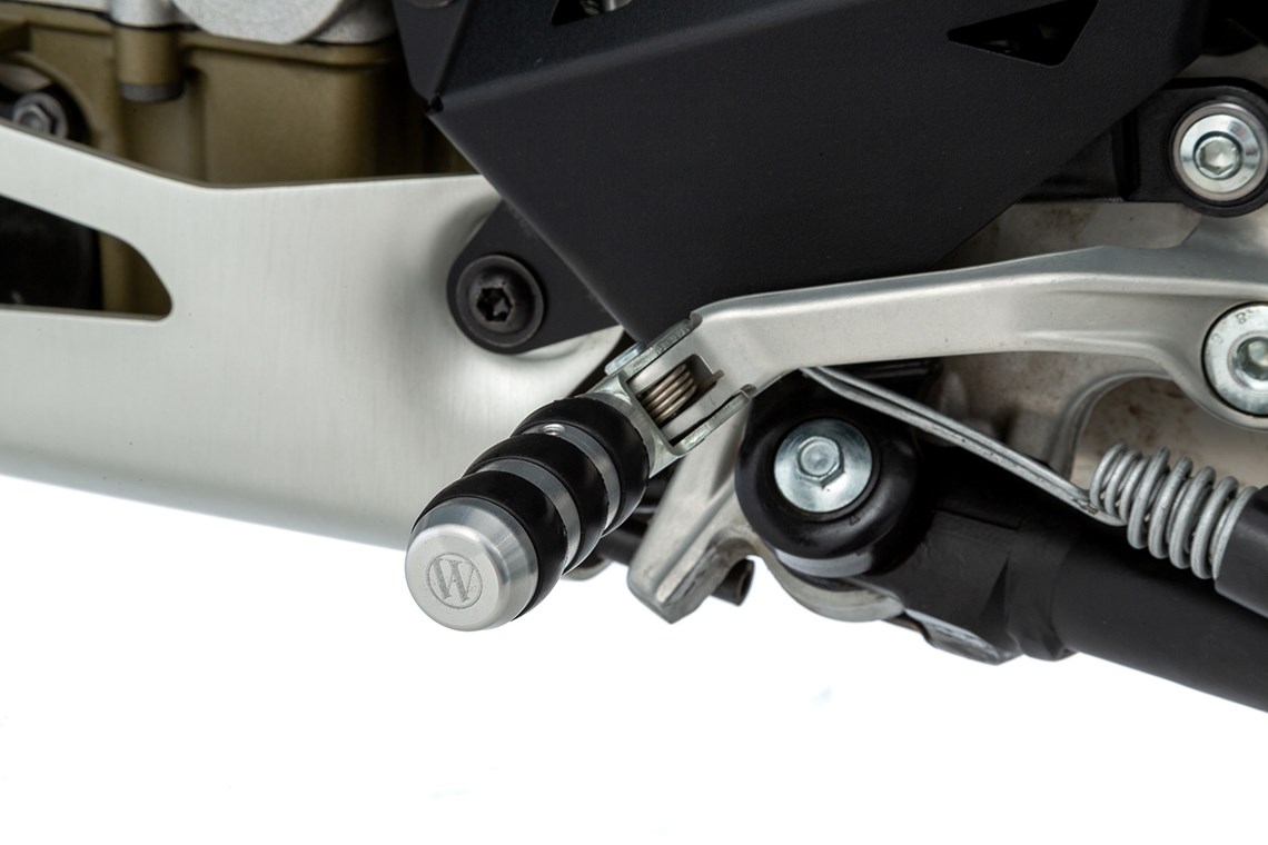 We find the standard foot shift lever too delicate, too short, and too thin in diameter. You keep searching for it, sometimes hitting it imprecisely, and unfortunately, slipping off with your boot is inevitable.