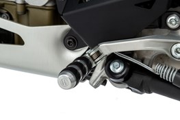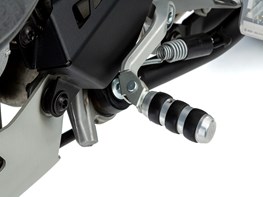 Ring-shaped, integrated rubber segments protect the motorcycle boots and improve grip when shifting gears