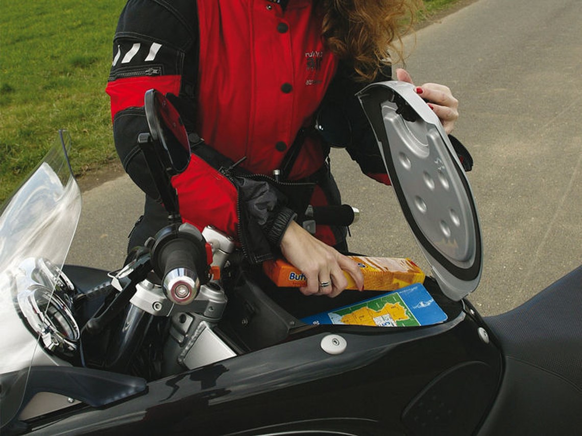 This is a must-have product for anyone with taste: It takes the bay cover to add the missing element to perfect the form of the CS. Where the tank is normally to be found, the F 650 CS instead has a large recess. We have come up with the good idea of making a high-quality, lockable cover to protect any valuables you may store in the recess and to enhance the CS both visually and technically. The Bay cover is made as a thermoformed ABS part using solid silver coloured ABS plastic, rounded