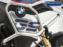 This tank guard forms a stable and homogeneous unit with the crash bar and its optic fits perfectly to the design of the F GS. It will be delivered in black colour with a complete mounting kit and fitting instruction.