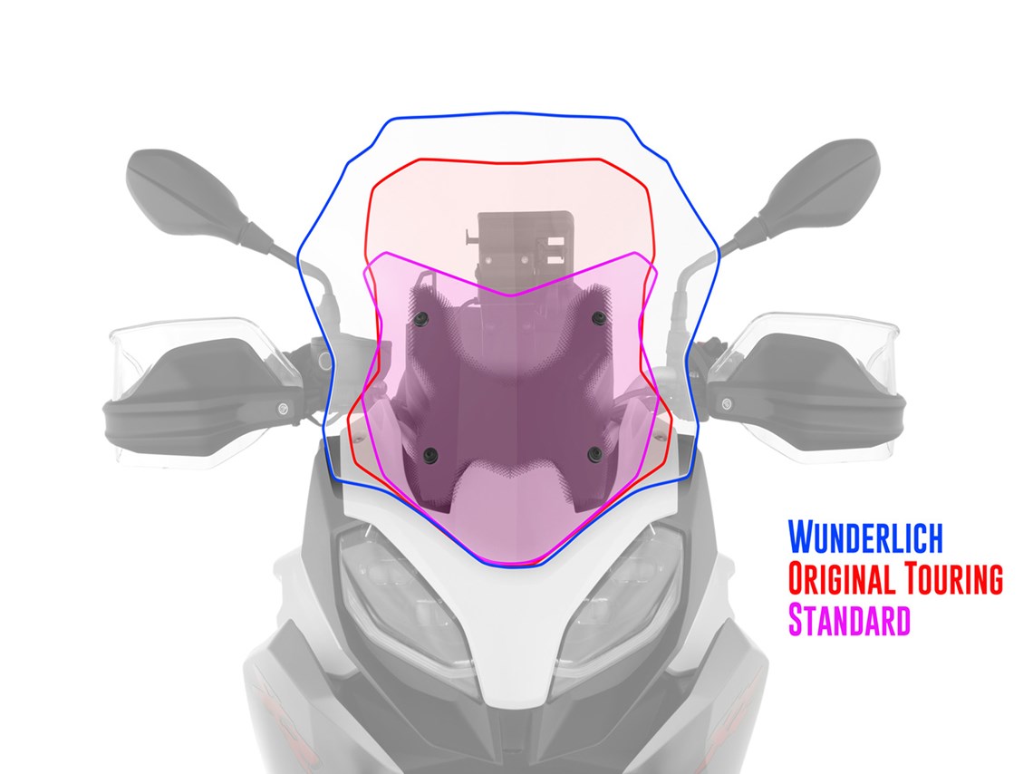 The tried and tested Marathon screen ensures relaxed riding thanks to its effective protection against wind and weather, its ergonomics as well as its distinctive comfort on long tours, and thus incidentally also ensures greater passive safety.