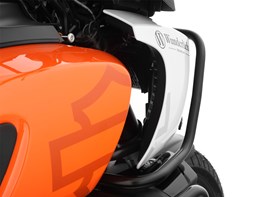 Wunderlich recommend preventive protection of the sensitive fairing, because the danger of damaging it is already present when manoeuvring in a garage or in public parking spaces. Our fairing protection bar reliably protects the fairing stem and the area around the headlight, thus reducing the risk of expensive damage. In the event of dropping the bike or falling over, the forces at play are optimally distributed via the protective bar structure to the load-bearing mounting points, so that force and momentum peaks are reduced. Visually, the fairing guard integrates perfectly into the bike's lines and emphasises its striking appearance. The fairing guard is made of 25 millimetre precision steel tubing. It consists of two tube segments that are formed on CNC tube bending machines and then cleanly welded. Mounting is easy to accomplish.