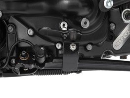 Unfortunately the side stand of the Pan America cannot be folded out easily. The arm for actuation is very hidden below the water pump. In addition the size of the arm is very tight and therefore not easy to reach. Especially not with motorcycle boots! The Wunderlich fold-out aid increases the actuation surface of the side stand and makes it much easier and more ergonomic to fold it out.