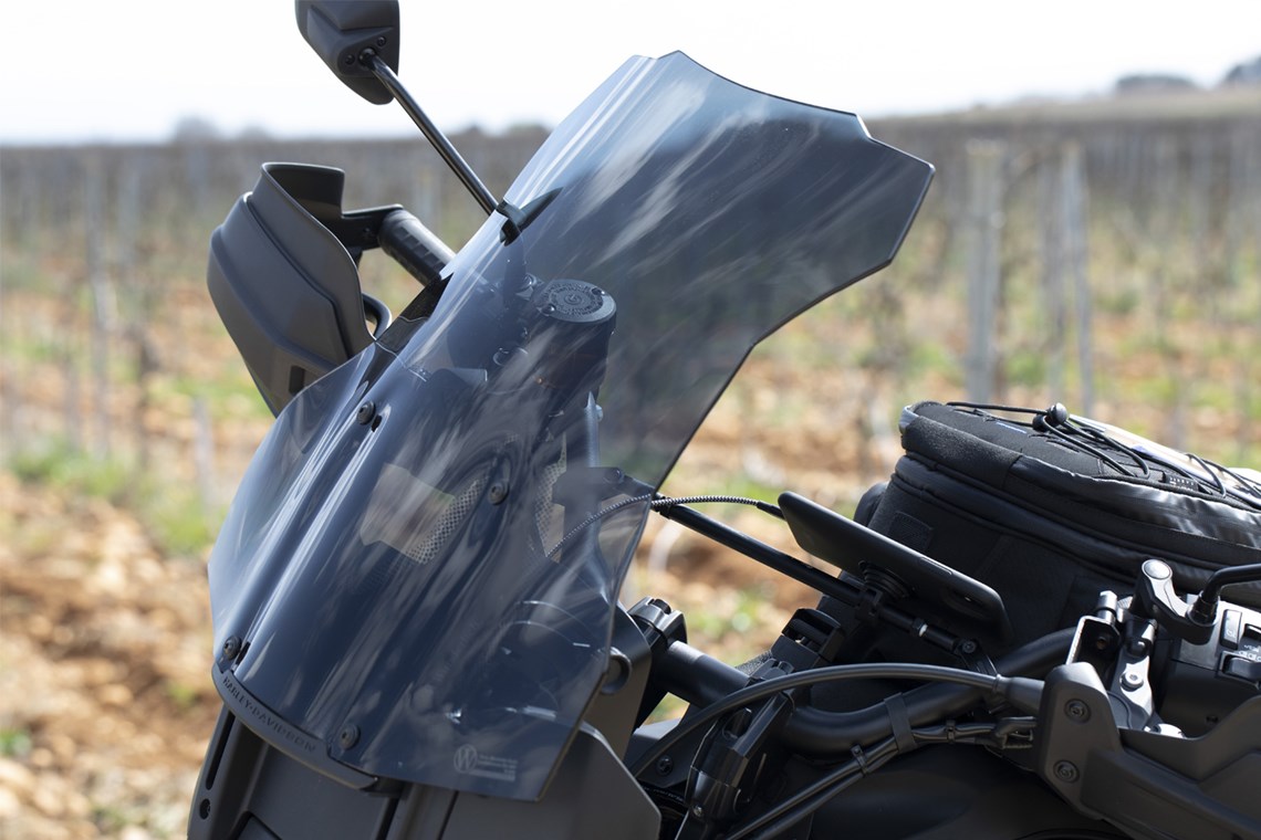 • Thanks to a special manufacturing process the windshield does away with any edge protection and offers a perfect view