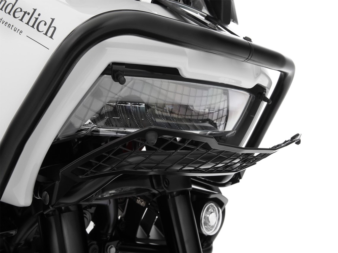 The Wunderlich foldable light grill protects the headlight in every situation.