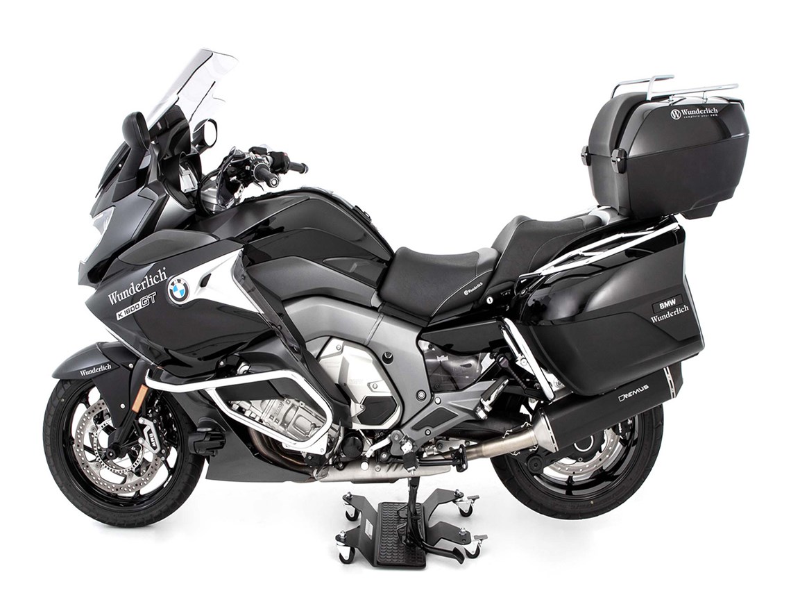 • BMW-specific, asymmetrical construction so that the foot lever for the centre stand doesn’t collide with the manoeuvring assistant when jacking the bike up