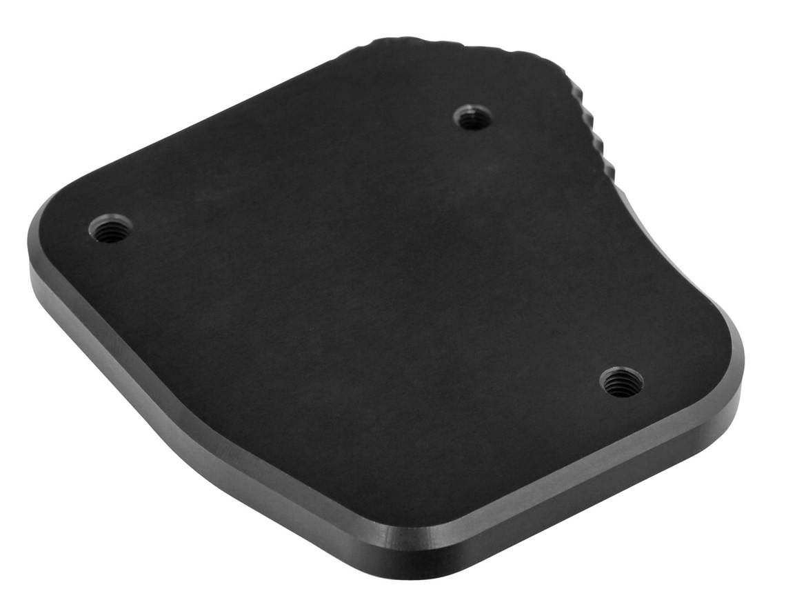 Precision machined enlarger plate is manufactured from 8mm thick aluminum alloy. The shape of the side stand enlarger is designed so that the stand will still fold away as before, but the area of the stand is INCREASED BY 100%.