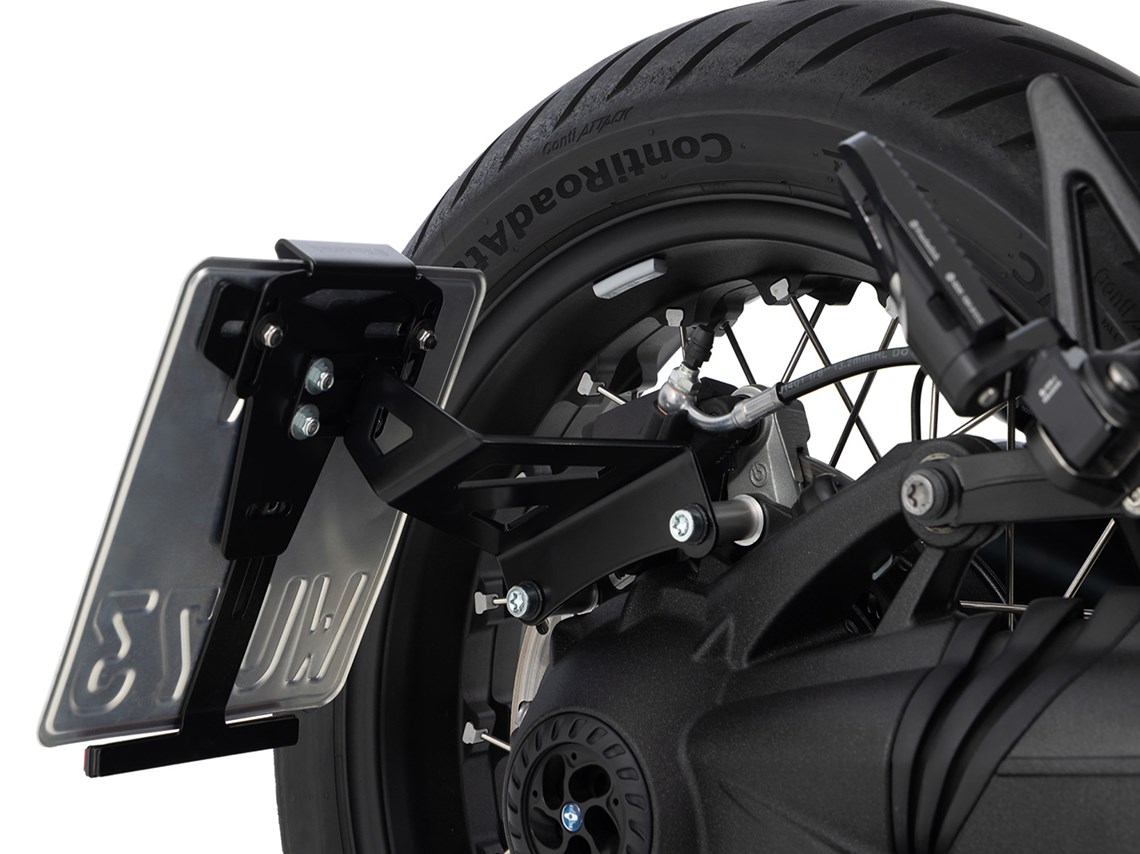 •The LOW license plate holder integrates perfectly into the right baseline with a clean look and opens up the view of the rear wheel