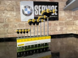 * With a versatile holder for the workshop. Clear size specifications on the holder for tidy storage of L-handle screwdrivers
