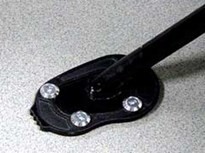 Precision machined enlarger plate is manufactured from 8mm thick aluminium alloy. The shape of the side stand enlarger is designed so that the stand will still fold away as before, but the area of the stand is INCREASED BY 100%.
