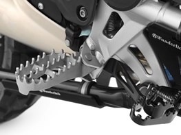 The original metal footrests of the R1200GLC Adventure and the R1250 Adventure AND the Enduro Footpegs if fitted to the R1200/1250 GS Rallye TE are perfectly designed for off-road use: They are robust, sturdy and tolerant to dirt. Even when covered with dust and mud they provide secure footing. They offer plenty of grip – at the expense of comfort. Which is fine up to a point.