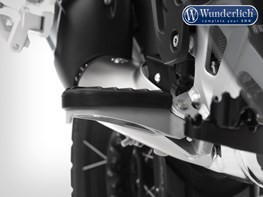 With this in mind, we have developed our rubber footrest pad for normal everyday use – for travelling, the daily commute to the office or simply riding around the city. Its profiled surface offers perfect grip. The pads are positively mounted and not only protrude over the edge of the original footrests but also surround them – so any shin contact is guaranteed to be painless! Oh, and your shoes will also remain unblemished. In addition, they ensure a pleasant damping of the engine vibrations. The secure attachment of the footpeg rubbers is ensured thanks to the precisely shaped holder which is attached from below via two screw fastenings. And when the terrain gets rough, they can be quickly and easily removed so you can enjoy some hard riding.
