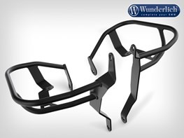 The engine protection bars reliably protects the cylinders and valve cover. The all-round protection concept increases passive safety and thus the joy of the ride. In the event of a crash or fall, the effective forces are optimally distributed across the structure of the protection bar and the durable attachment points, thus avoiding high forces.