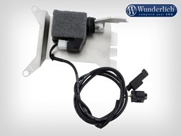 This navigation security prevents this in a smart way. It is simply coupled to the motorcycle's central locking system, which also integrates the storage compartments, the cases and the top case. If the central locking system is activated when the motorcycle is parked or while driving, a mechanical locking system using a servomotor reliably locks the mechanical actuating head of the ejector. So the navigation system is safe. The servomotor of the navigation system is attached invisibly with a precisely fitting stainless steel bracket under the cover of the navigation unit. The control and power supply are connected via the original plug connections.
