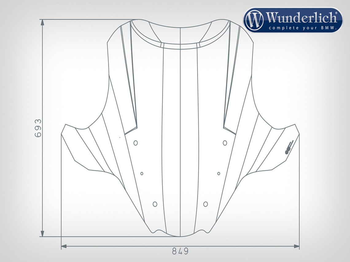 To the sides Wunderlich have built in a trailing edge to minimise turbulence and provide even relief for the whole upper body including the shoulders. Thanks to this turbulence-free protection will be achieved also in the helmet area. Therefore also taller riders will be protected very well even at the highest speeds.