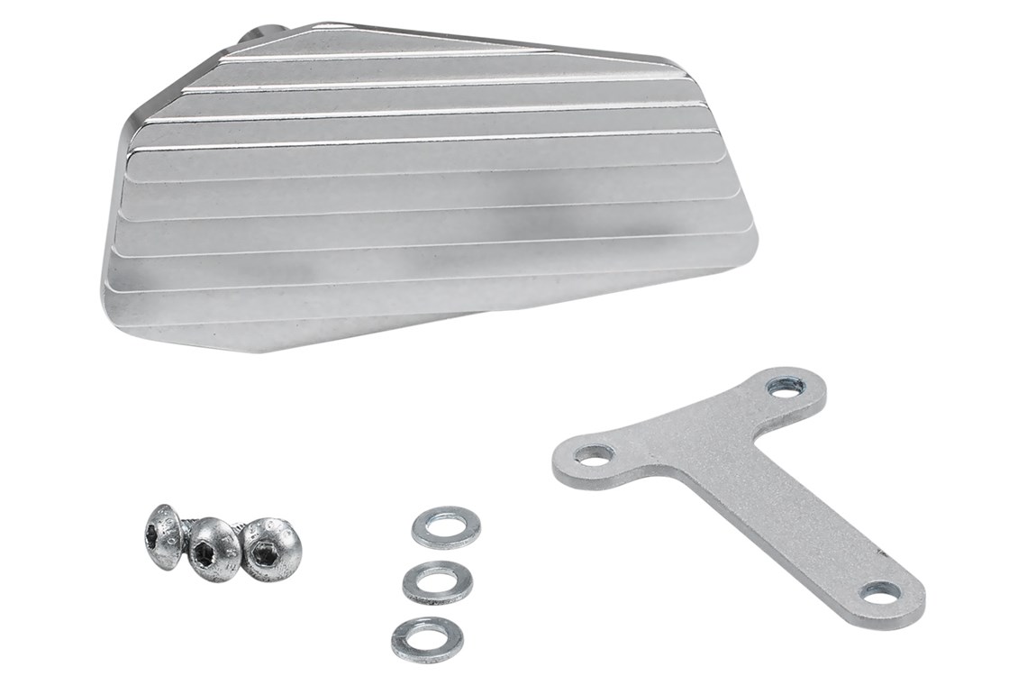 In its original form the footrest area is unfortunately rather small, which all too often presents a safety risk. If your boot is resting too far towards the edge of the footrest, you have to bend it awkwardly to reach the brake. With this lever enlarger installed, a wet boot slipping off the lever tip or treading on thin air belongs in the past.