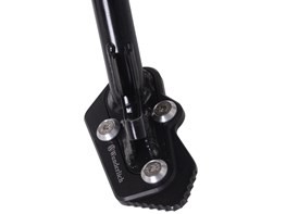 Precision machined enlarger plate is manufactured from 8mm thick aluminum alloy. The shape of the side stand enlarger is designed so that the stand will still fold away as before, but the area of the stand is INCREASED BY 100%.