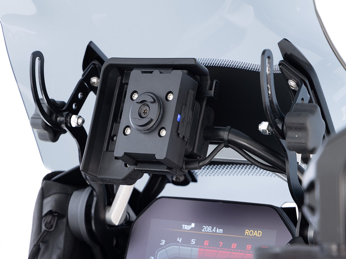 • Standardized hole patterns suits most navigation brackets (e.g. Garmin Zumo XT).