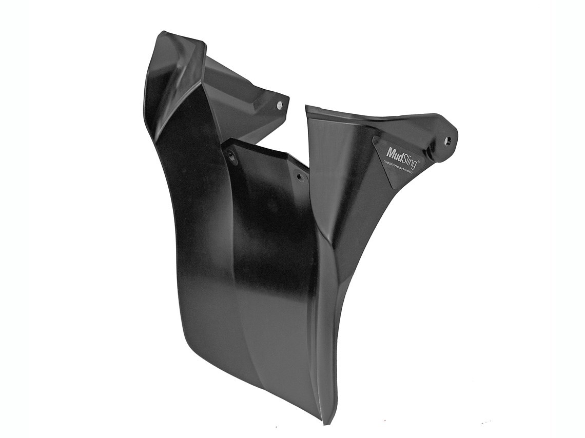 • The MudSling is injection moulded in resilient polypropylene with a fine texture matching other plastic part surfaces on the GS. It is precisely shaped to engage the bottom of the existing fender and fit tightly against the frame.