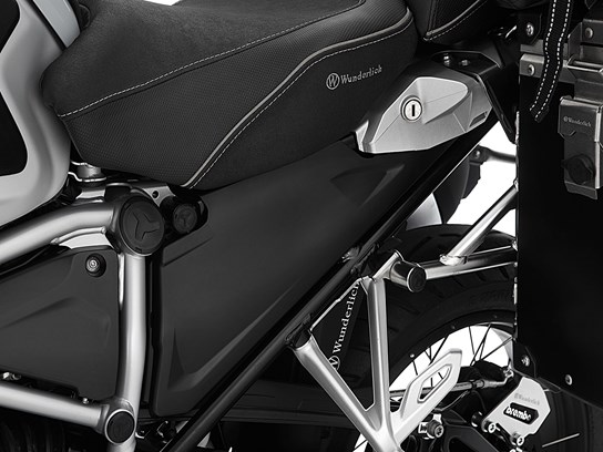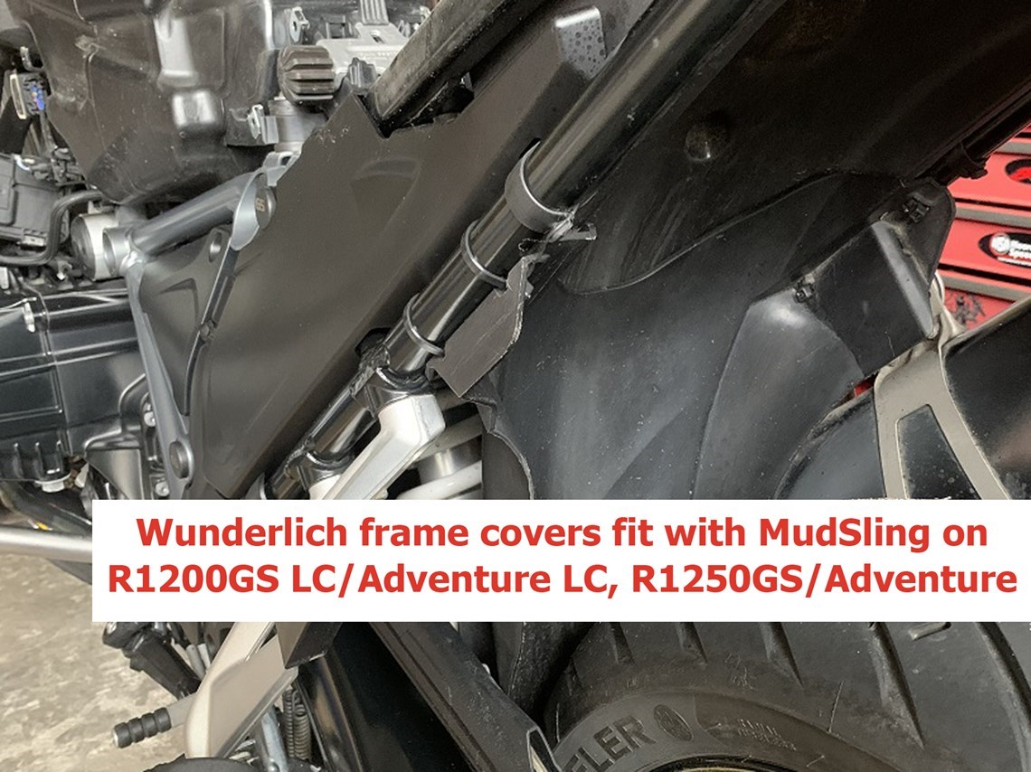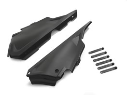 The two frame covers close the two side openings of the frame rear perfectly. Thrown up dirt, stone chips, splash water or spray are effectively caught or diverted before they reach the driver and front passenger. The mess of the machine is noticeably reduced. The design, which is dynamic due to the fillets, remains discreet and appears unobtrusive and harmonious on the motorcycle. Very easy fitment.
