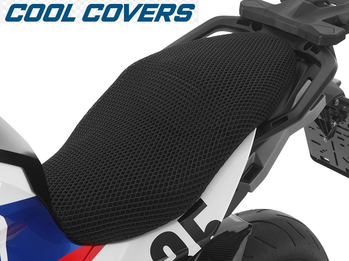 This seat cover is the climate control for your original BMW bike seat. The air can circulate while riding because the cover is constructed in three dimensions and is eight millimetres thick. It doesn't completely compromise even with a lot of weight: Not only is the air permeability assured, but the seat even stays dry in the rain. The Cool Cover also doesn't heat up in sunlight. An additional benefit: It creates an effect resembling a massage and thus reduces the symptoms of tiredness.