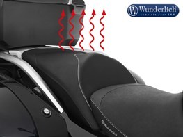 Relaxation for the passenger! An ergonomic design precisely tailored to the riding position. As a passenger, this also lets you have long-lasting touring pleasure. We were also able to sustainably improve the support (in particular while braking), which leads to significantly more relaxing touring enjoyment. The progressive foam core and the relief to the coccyx silence any complaints.