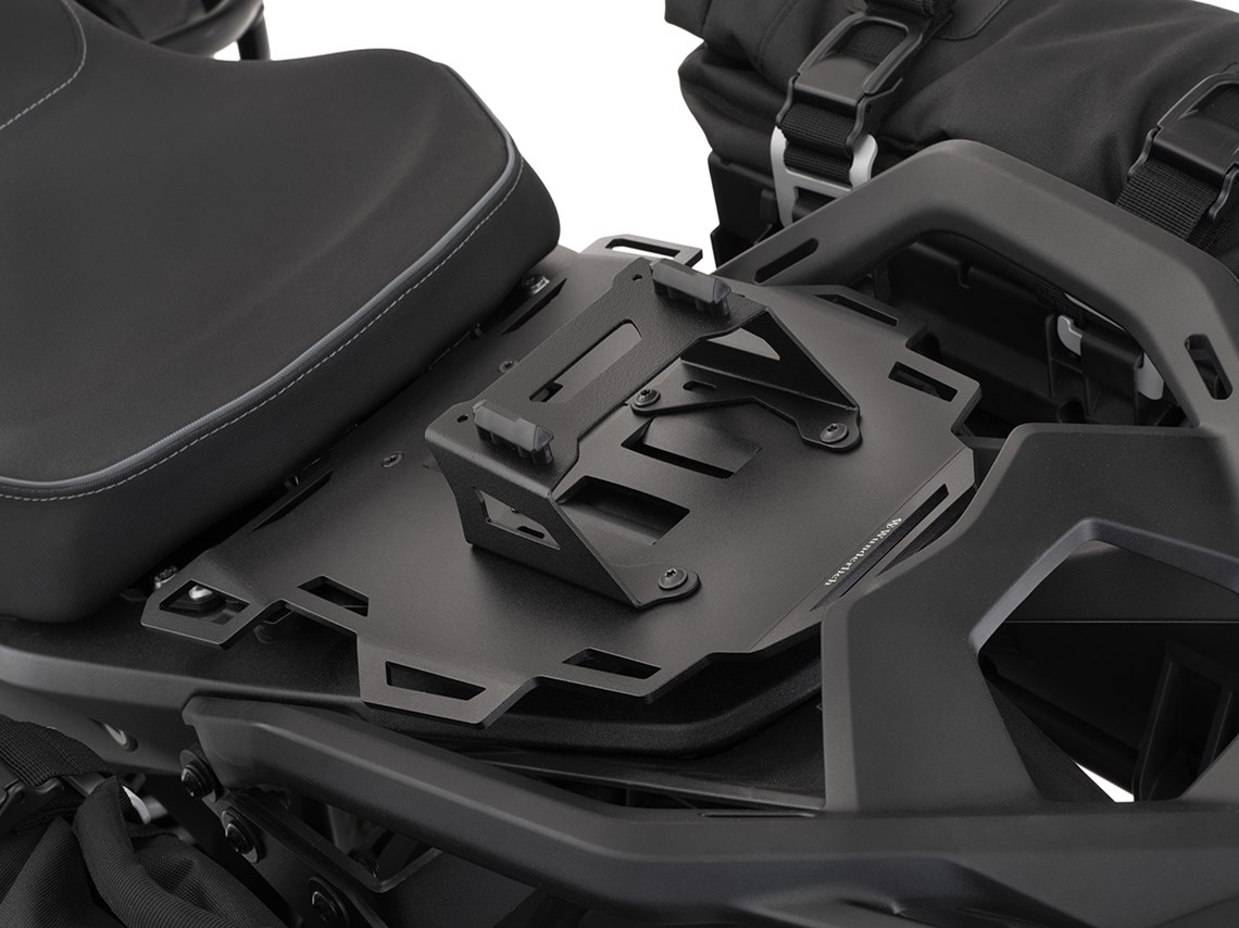 Secure attachment for mounting CLICK BAG tank bags: This CLICK BAG mount for the pillion luggage rack of the R1300GS